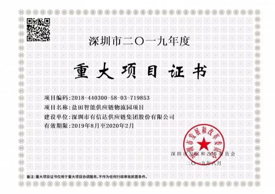 登!登!登!登!嗯,咱们先看看金光闪闪的重大项目证书真身,再听小编娓娓道来~深圳市重大项目是指符合深圳市产业发展导向,对深圳市经济社会发展具有重大影响和带动作用,投资规模较大,并按规定程序列入年度重大项目计划的固定资产投资项目。 为大力支持重大项目建设,市政府对重大项目给予了一系列的政策支持和便利服务,这些内容主要包括:1享受审批直通车服务根...