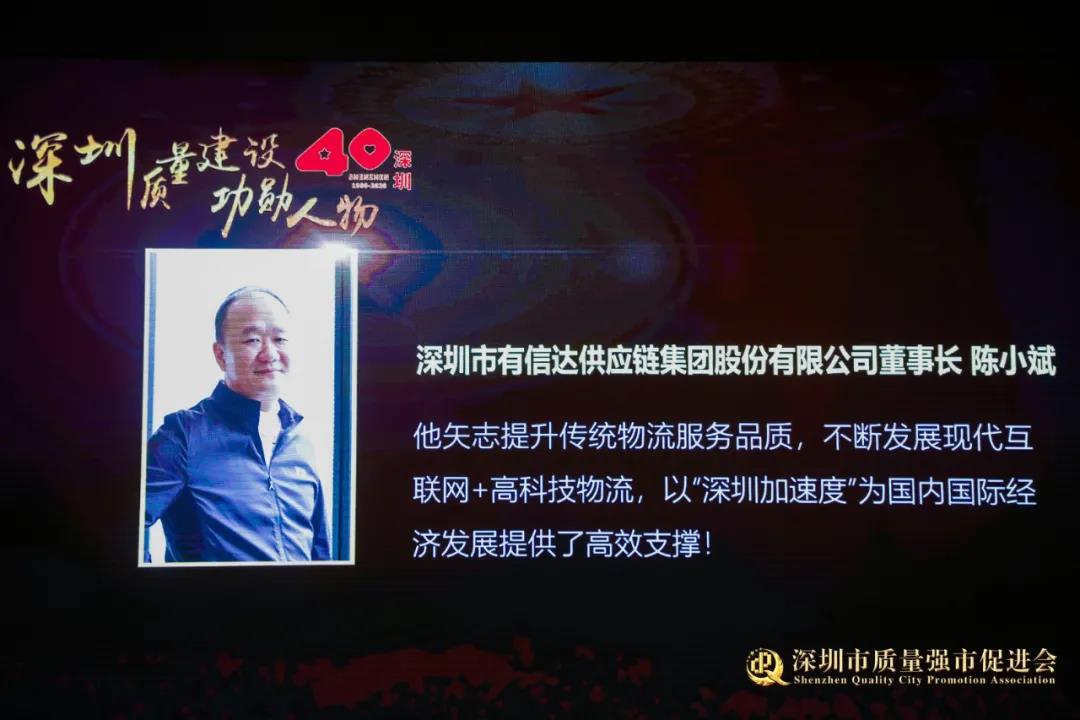 “深圳质量建设40位功勋人物及40位杰出质量人”评选由深圳市质量强市促进会主办,本次评选历时将近一年之久,参选企业覆盖了深圳的绝大数行业领域,具有广泛的代表性。此次评选活动通过企业推荐、资格审查、现场考察(抽查)、专家评审等程序,深圳市3133拉斯维加斯供应链集团股份有限公司总裁陈小斌获颁“深圳质量建设40位功勋人物”殊荣,成为了参与和见证深圳40年高质量发展,不忘初心、坚定不移走质量效益型发展之路,推动物流行业向“深圳质量”发展的先进模范。